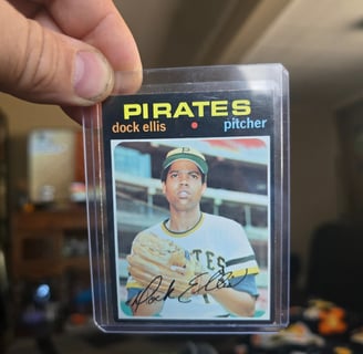 Brenna has always loved this story and has always wanted to get a hold of a Dock Ellis Baseball Card. She doesn't collect baseball cards or any cards of any kind. So of course when she said that in a random conversation days before Valentine's Day....